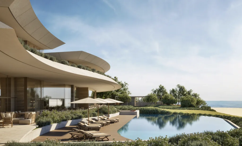 Developed by the Abu Dhabi-based real estate firm Eagle Hills, founded by Mohamed Alabbar, the project will be designed by Milanese architects ACPV ARCHITECTS Antonio Citterio Patricia Viel. The striking design will feature gold and glass rising from the sand, paying tribute to both Rome’s architectural grandeur and the region’s rich culture. Babin noted that the facade aims to be contemporary while also reflecting the local appreciation for luxurious materials.